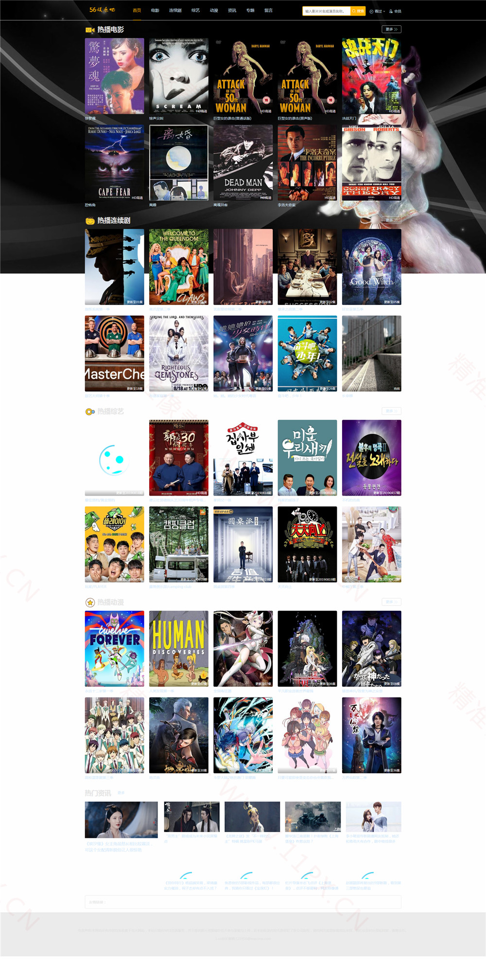 亲测完美无错黑色卡通背景风格苹果CMS模板,模板分为首页、列表、播放页、新闻列表页、新闻内容页。