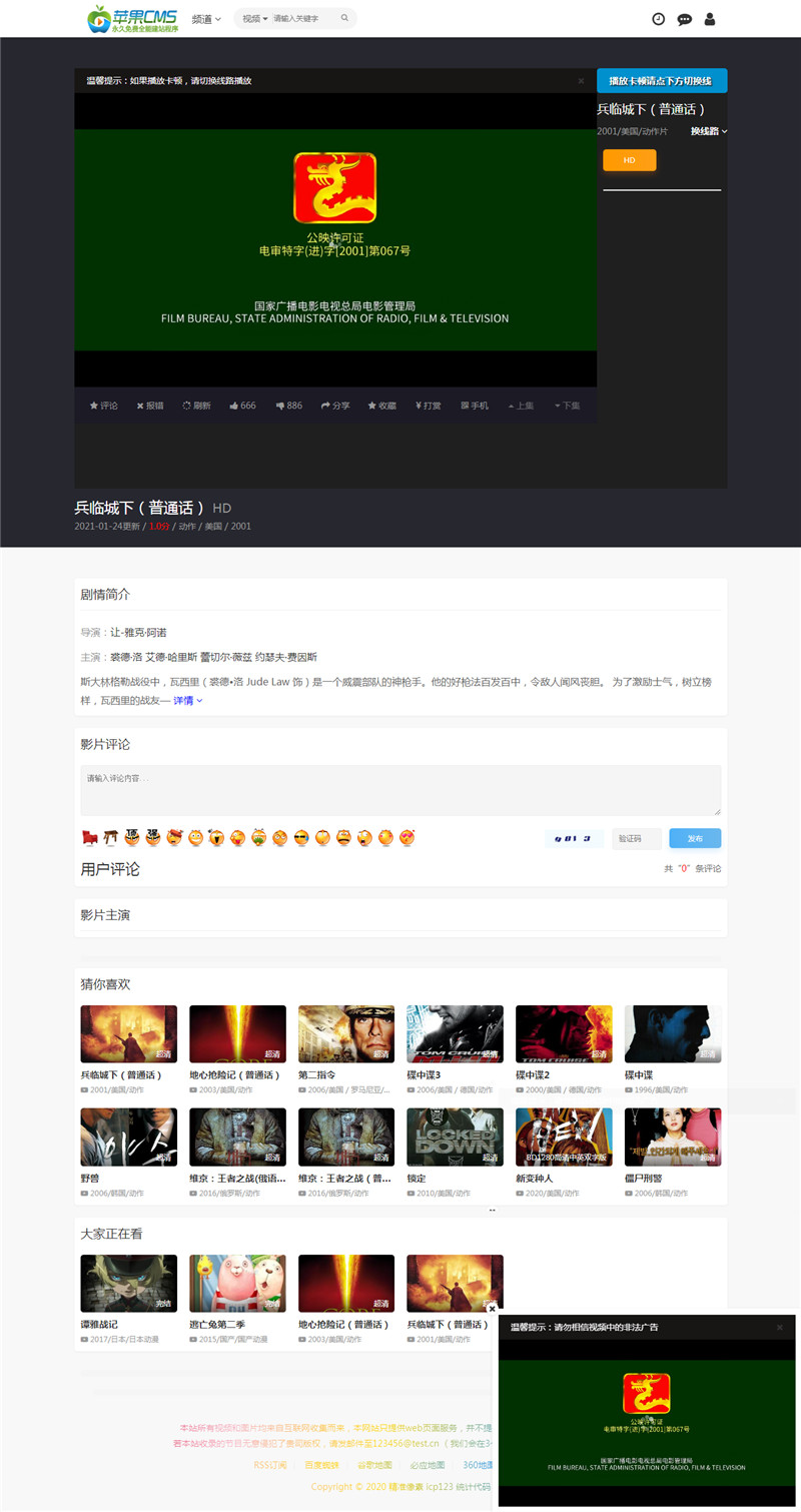苹果cmsv10仿优酷视频网站模板(剔除弹窗版)