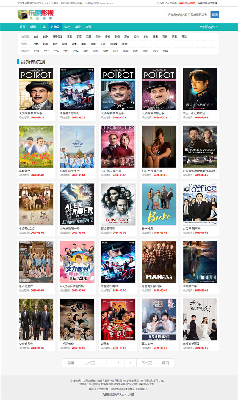 苹果cmsv10白色影视网站自适应模板6号(带迅雷下载)