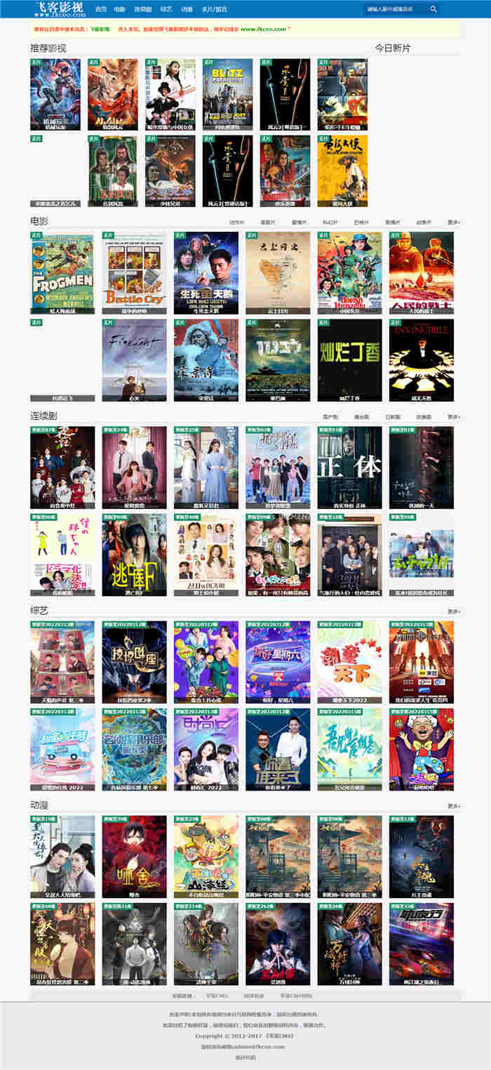 苹果CMSv8仿飞客影视自适应网站模板,自适应手机端,蓝色风格,苹果cmsV8版本。