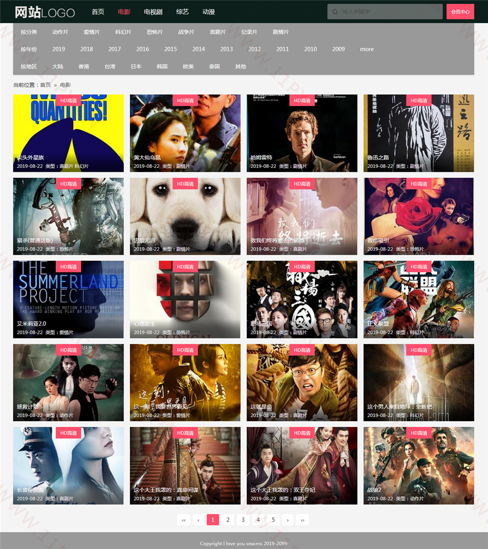 苹果cmsv10白色影视网站自适应模板6号(带迅雷下载)