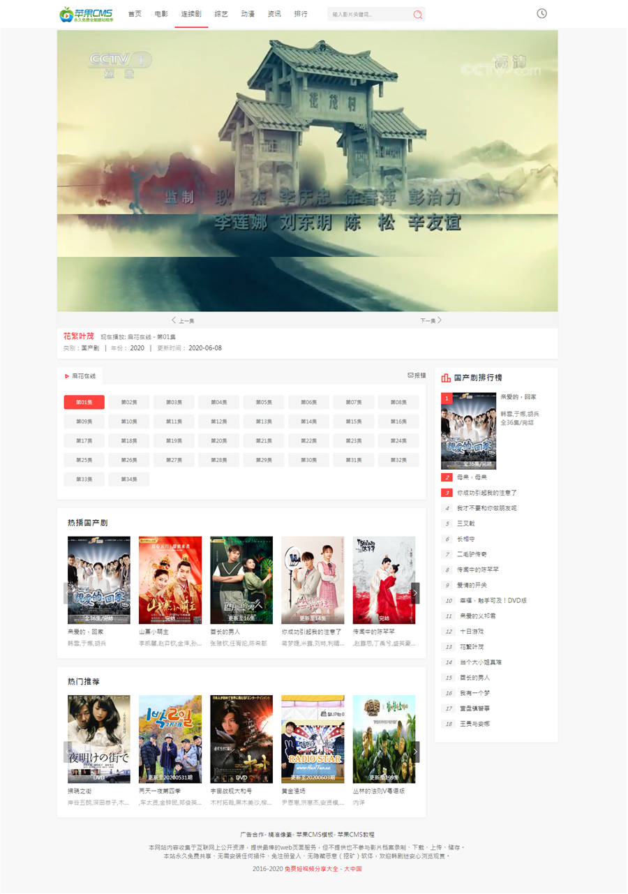 苹果cmsv10仿优酷视频网站模板(剔除弹窗版)