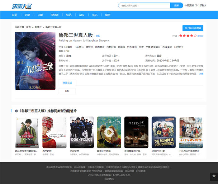 苹果cmsv10白色影视网站自适应模板6号(带迅雷下载)