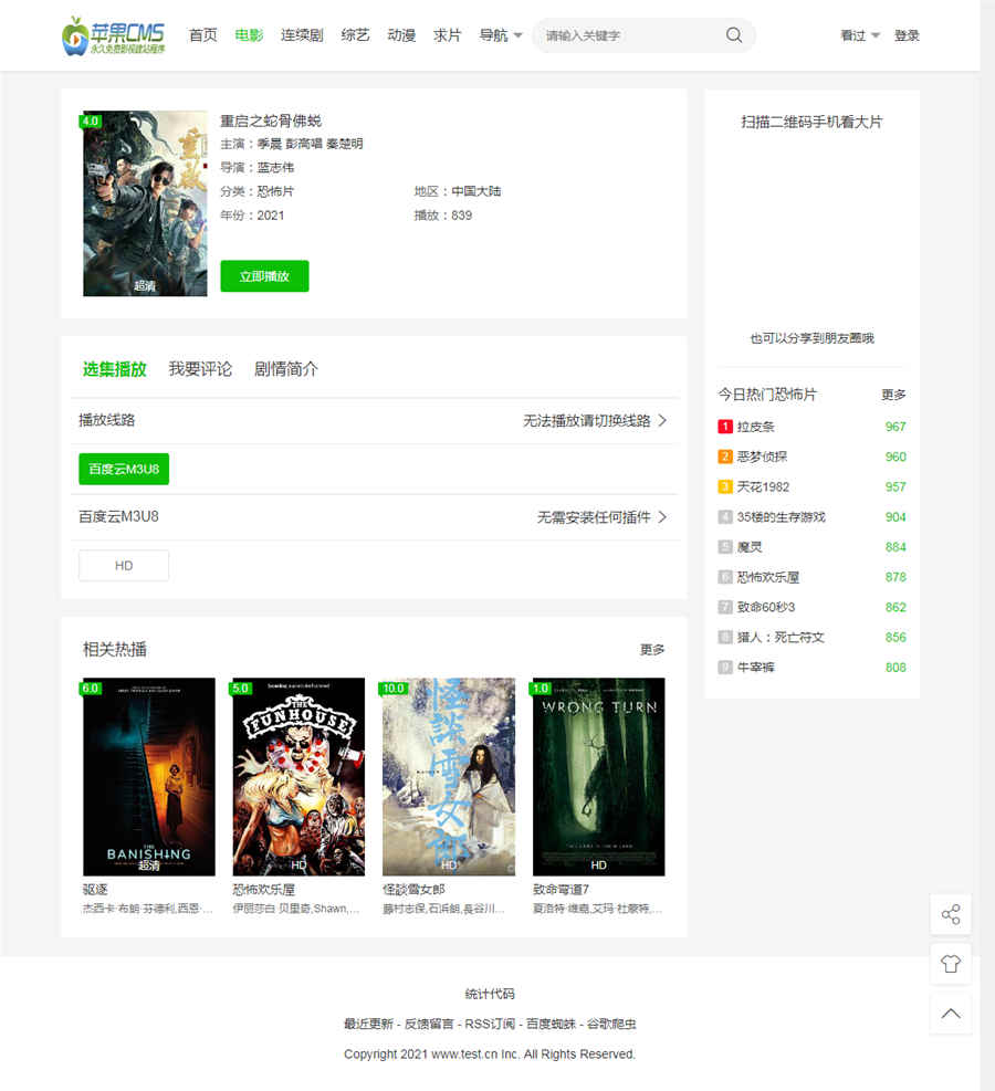 苹果CMS通用自适应主题模板,苹果CMSV10模板,通用主题,自适应手机端,包含所有模块,全功能都有。